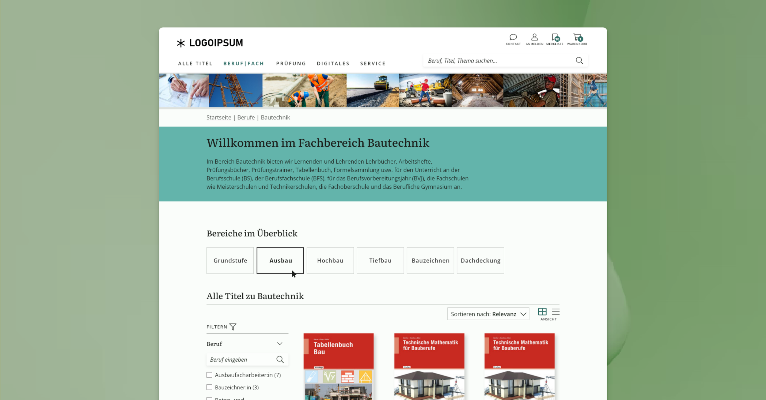 Für einen renommierten Verlag für technische Bildungsmedien gestaltete ich den gesamten Webauftritt inklusive Onlineshop neu. Ziel war es, die teilweise veraltete Informationsarchitektur und das unübersichtliche Design zu modernisieren, die Auffindbarkeit von Lehrwerken zu verbessern und den Warenkorbprozess für verschiedene Nutzergruppen klarer zu strukturieren.