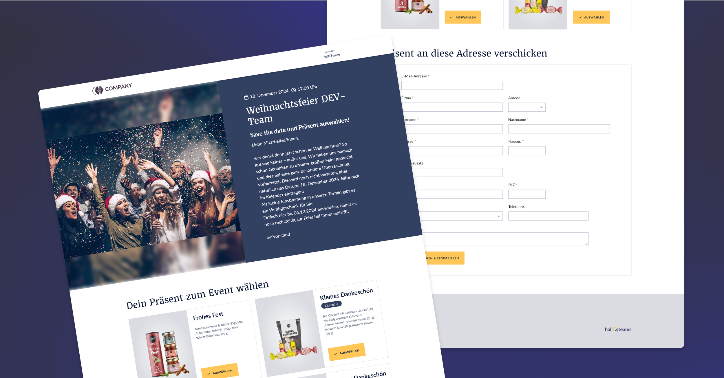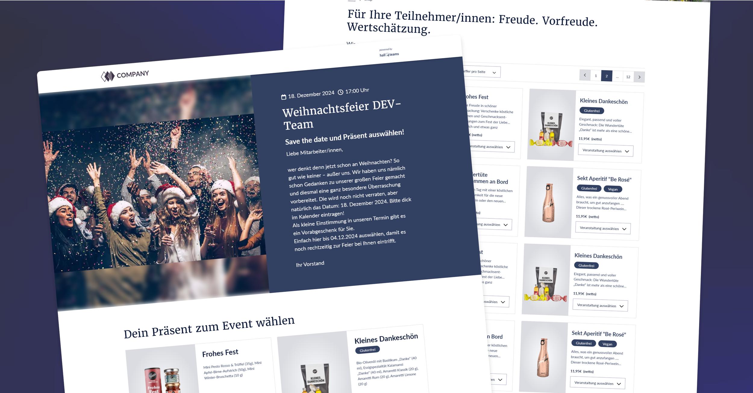 Ziel: Entwicklung einer digitalen Plattform, die Unternehmen mit Anbietern von Präsenten verbindet, um Mitarbeiter:innen im Rahmen von Online-Events – etwa Onboardings, Teamevents oder Weihnachtsfeiern – individuell beschenken zu können.